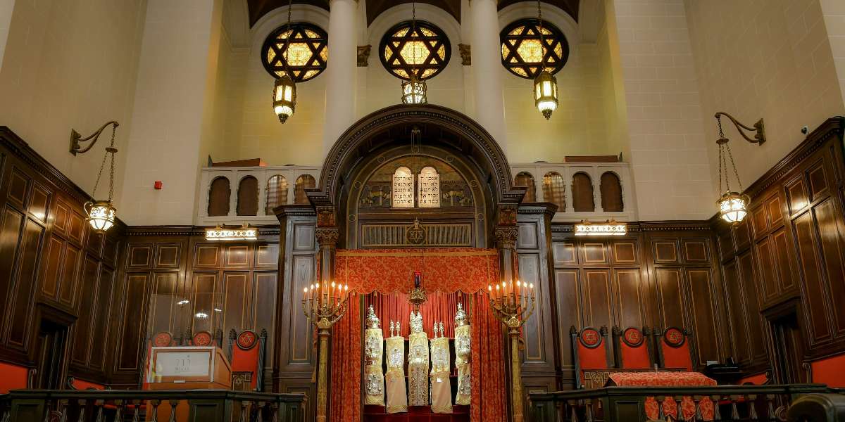 Die Führung erschließt die religiöse Welt des Judentums und macht auf die Besonderheiten des Gebäudes aufmerksam. Im Inneren finden sich der Tora-Schrein, die Menora (siebenarmiger Leuchter) und andere Gegenstände, die im Rahmen der Führung erklärt werden. Sie erfahren, wie ein Gottesdienst abgehalten wird und wie die heutige Situation der israelitischen Religionsgemeinschaft ist. Nach der Führung nehmen wir im Restaurant des jüdischen Gemeindezentrums ein typisch jüdisches, d. h. koscheres, Essen ein.