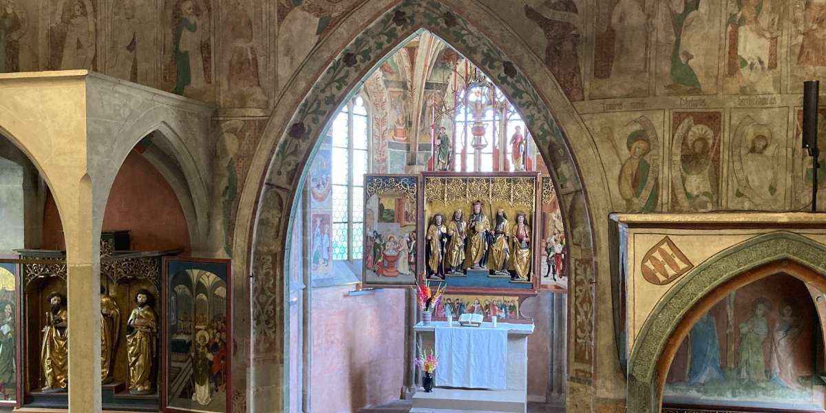 Pilgern ist eine Zeit der Erfrischung für Leib und Seele. In unserem geschäftigen Alltag ist diese Zeit wie eine Oase in der Wüste. Unsere Seele erholt sich von der Hektik des Alltags. Neue Eindrücke beleben uns. Wir starten in der Veitskappele in Stuttgart-Mühlhausen. In dieser Kapelle können wir die außergewöhnlich gut erhaltenen Wand- und Gewölbemalereien und die mittelalterlichen Altäre bestaunen. Das alles vermittelt den weitgehend originalen Eindruck einer Kirche des späten Mittelalters. Danach wird uns unser Weg am Neckar um den Max-Eyth See führen. Dort ist eine Einkehr geplant. Abschließend gehen wir zum Schnarrenberg hoch und genießen die schöne Aussicht über das Neckartal.